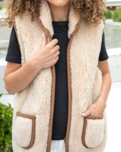 Made from high-quality Merino wool, this brown vest is exceptionally soft, gentle, and pleasant to the skin. Merino wool is known for its ability to regulate body temperature – it keeps you warm when it’s cold and allows the skin to breathe when it’s warmer. The material naturally absorbs moisture and does not cause discomfort, making it perfect for everyday wear.