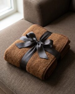 Camel wool is known for its ability to retain heat while remaining lightweight and breathable. It naturally adapts to body temperature, ensuring the baby does not overheat or get cold. Merino wool adds extra softness, making the blanket gentle even on sensitive baby skin.