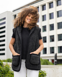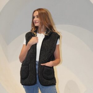 Dark grey Merino wool vest – a practical and versatile choice for both men and women. Made from natural Merino wool, it keeps you warm, allows the skin to breathe, and helps maintain a comfortable body temperature in various weather conditions.