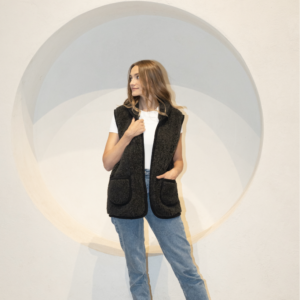 Lightweight yet warm, the vest is perfect for layering – wear it over a shirt, sweater, or under a jacket. The classic dark grey color is easy to match with everyday or casual outfits. The vest also features a fold-over collar, providing extra warmth and comfort.