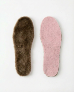 Warm and soft insoles made from natural fur, designed for comfort and warmth in cooler weather. The top layer provides pleasant warmth for the feet, while the bottom latex layer adds flexibility and cushioning.