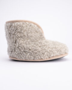 Distinctive merino wool boot slippers with a giraffe-pattern accent – cozy, warm, and playful. The higher shaft gently wraps around the foot, providing extra warmth.