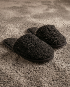These black Merino wool slippers are designed for cozy evenings at home! They are soft, gentle, and very warm – comfortable to wear all day long.