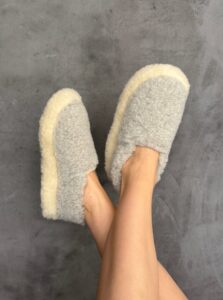 Very soft and cozy slippers made from natural Merino wool – PELENĖ. The gentle wool pleasantly wraps around the foot, keeping it warm while allowing it to breathe, ensuring lasting comfort throughout the day.