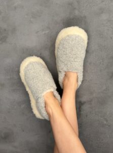 The wool naturally adapts to the shape of the foot, making these slippers suitable for both wider and narrower feet. They are extremely lightweight and soft.
