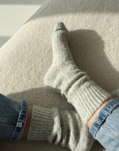 The socks naturally regulate temperature – they keep your feet warm in cold conditions and allow them to breathe, making them suitable not only for winter but also for warmer seasons. Wool absorbs moisture well, maintaining a dry and comfortable feel.