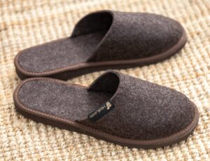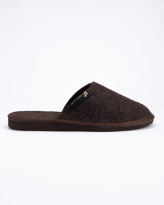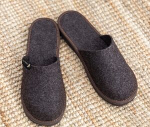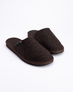 Slip-on brown felted slippers RIEŠUTAS – WoolLando
