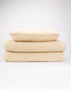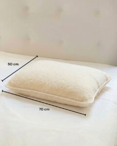 Merino wool naturally adapts to body temperature – it keeps you warm in cooler conditions and allows the skin to breathe when it’s warmer. Thanks to these qualities, the pillow ensures comfort in all seasons. Additionally, wool has moisture-regulating properties, helping maintain a feeling of dryness and freshness during sleep.