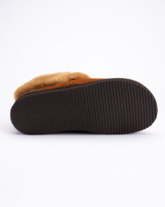 Women’s dark natural fur leather slippers KIRA, WoolLando